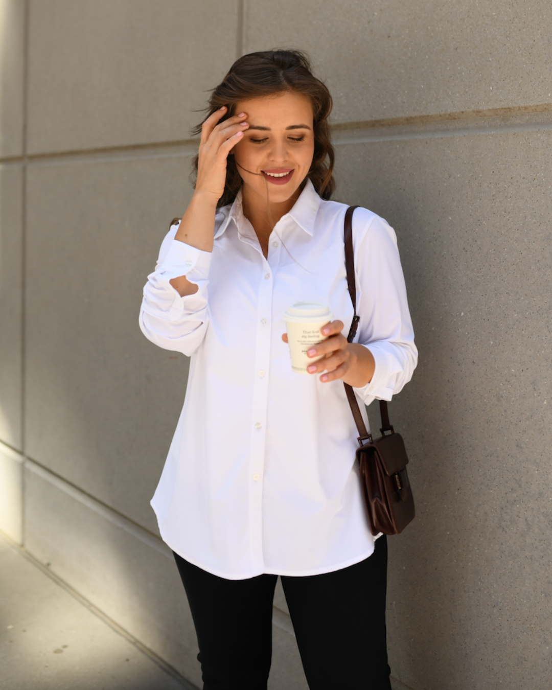 The Sullivan Shirt is your go-to for effortless style and comfort. Designed with a modern, relaxed fit, it offers a flattering silhouette without feeling too structured. Made from our signature machine-washable fabric, it's built for real life low-maintenance, wrinkle-resistant, and endlessly versatile.